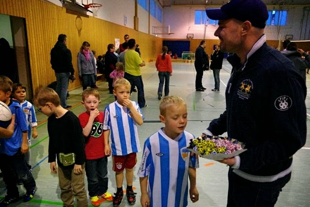 Im Rahmen der Weihnachtsfeier wurde Matheo unser „Eintrachtler des Monats Dezember“. Als jüngster aktiver Spieler (fast 4 Jahre alt) des Vereins wirft er sich fast schmerzfrei in jeden Ball und jeden Spieler. Begleitet wurde er von seinem Eskortenpartner Ercan von der 1. Männermannschaft, dem hier stellvertretend für die ganze Mannschaft zur Herbstmeisterschaft herzlich gratuliert wurde.
